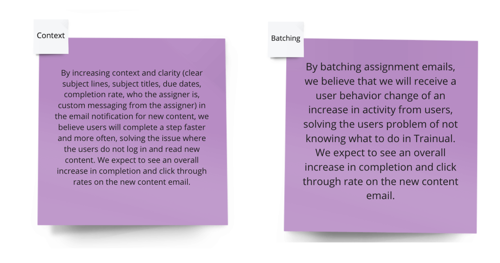 Trainual’s Bulk assignment email notifications were underperforming. Users found them unhelpful, cluttered, and inconsistent. To improve engagement, we needed to evaluate the existing experience and identify pain points.