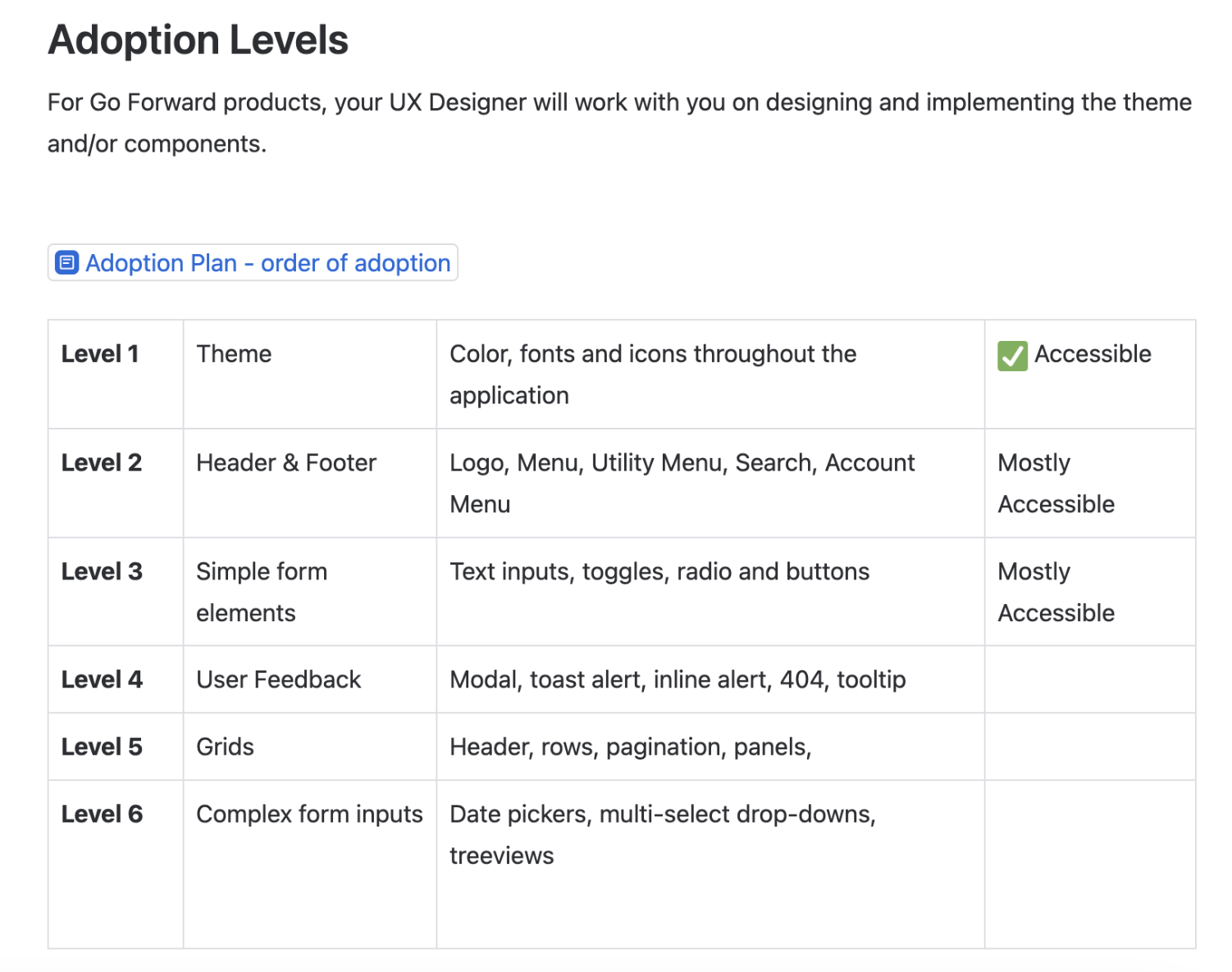 For teams that couldn’t fully adopt due to roadmap constraints, we introduced phased adoption levels.